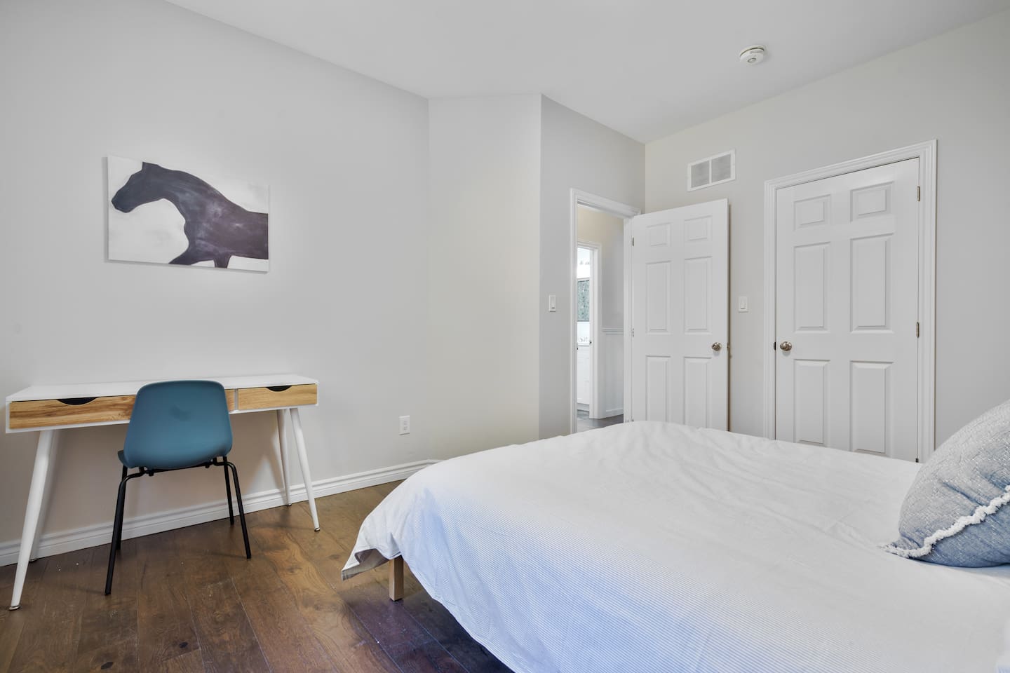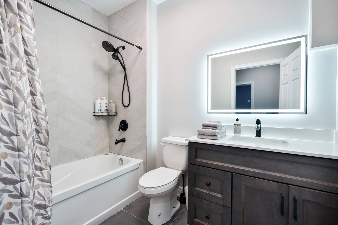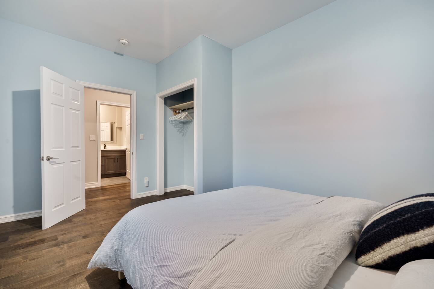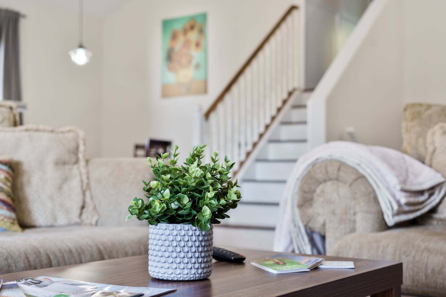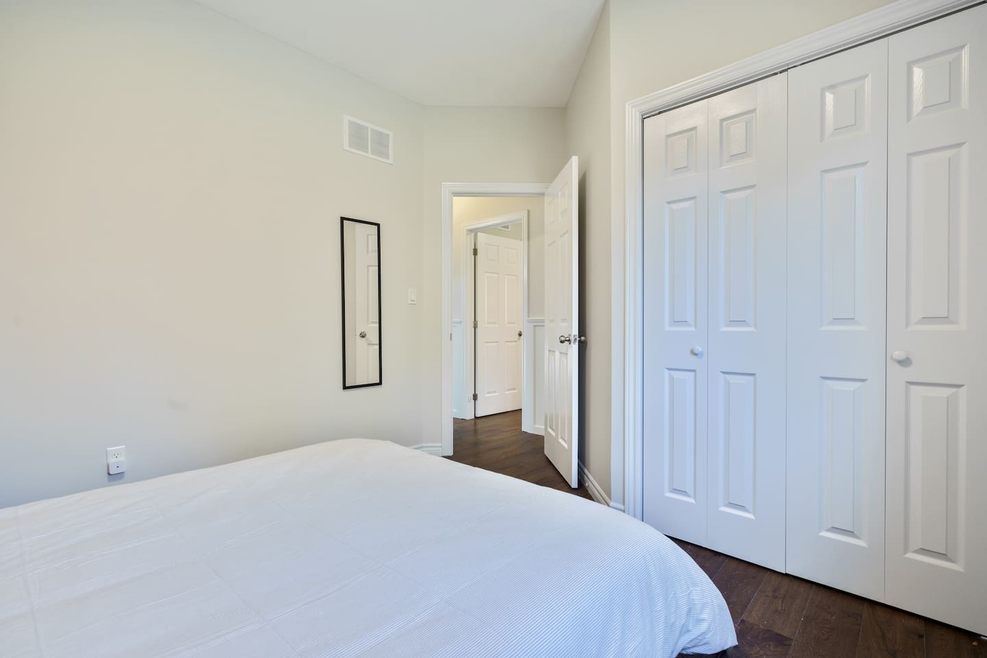 This unique 4-floor home provides ample room for your group to relax and connect, featuring 4 bedrooms and 2 full bathrooms for up to 8 guests. **Main Living Area (Upper Level)**: An open-concept space with comfortable couches, a large Smart TV, and a Bluetooth record player. **Kitchen & Dining (Upper Level)**: A fully equipped kitchen with coffee, tea, and spices. A large island and a dining table for six make group meals easy. **Downstairs Living Area**: A second cozy living room with its own Smart TV and a sliding door leading to the backyard. **Downstairs Kitchen**: A convenient second full kitchen complete with a dishwasher, Keurig machine, microwave, and cooking essentials. **Bedrooms**: * Master Bedroom (Top Floor): Queen bed, large walk-in closet, and a dedicated workspace. * Second Bedroom (Top Floor): Queen bed, closet, and a full-length mirror. * Third Bedroom (Bottom Floor): Queen bed and a closet. * Fourth Bedroom (Bottom Floor): Queen bed and a closet. **Bathrooms**: Two full bathrooms (one on the top floor, one on the bottom), each with a shower/tub combo and complimentary toiletries. **Outdoor Spaces**: Enjoy a private patio with Muskoka chairs and an expansive backyard with a BBQ grill and outdoor dining area. **Extra Amenities**: The home includes two sets of washers and dryers, fast Wi-Fi for streaming and remote work, and a magnetic dartboard for entertainment. This unique 4-floor home provides ample room for your group to relax and connect, featuring 4 bedrooms and 2 full bathrooms for up to 8 guests. **Main Living Area (Upper Level)**: An open-concept space with comfortable couches, a large Smart TV, and a Bluetooth record player. **Kitchen & Dining (Upper Level)**: A fully equipped kitchen with coffee, tea, and spices. A large island and a dining table for six make group meals easy. **Downstairs Living Area**: A second cozy living room with its own Smart TV and a sliding door leading to the backyard. **Downstairs Kitchen**: A convenient second full kitchen complete with a dishwasher, Keurig machine, microwave, and cooking essentials. **Bedrooms**: * Master Bedroom (Top Floor): Queen bed, large walk-in closet, and a dedicated workspace. * Second Bedroom (Top Floor): Queen bed, closet, and a full-length mirror. * Third Bedroom (Bottom Floor): Queen bed and a closet. * Fourth Bedroom (Bottom Floor): Queen bed and a closet. **Bathrooms**: Two full bathrooms (one on the top floor, one on the bottom), each with a shower/tub combo and complimentary toiletries. **Outdoor Spaces**: Enjoy a private patio with Muskoka chairs and an expansive backyard with a BBQ grill and outdoor dining area. **Extra Amenities**: The home includes two sets of washers and dryers, fast Wi-Fi for streaming and remote work, and a magnetic dartboard for entertainment.